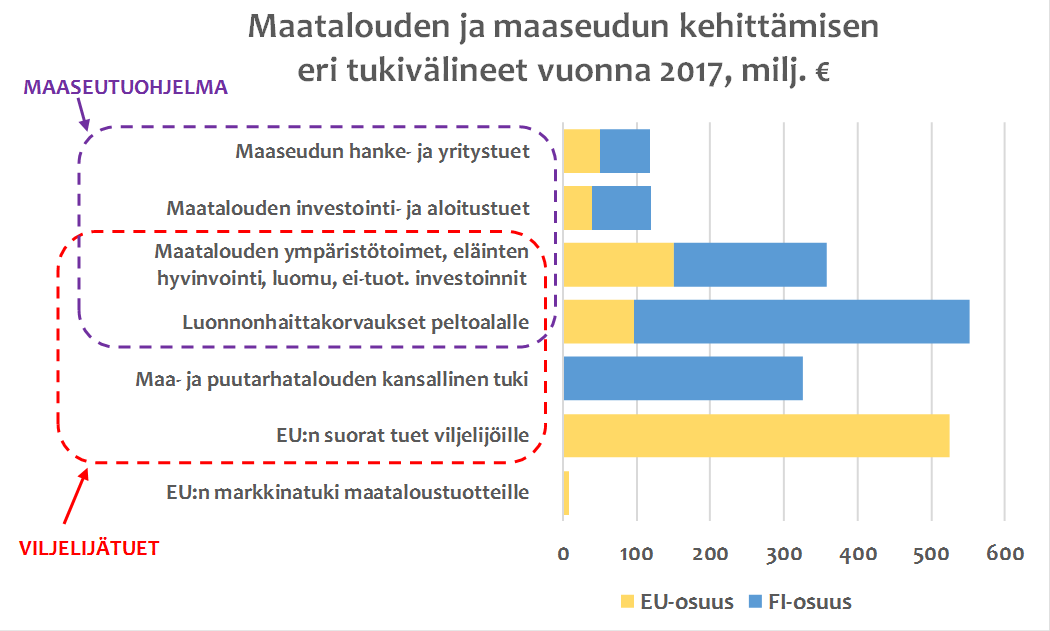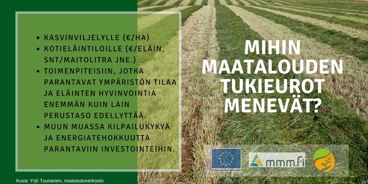 Maatalouden tukirahoitukseen ja maaseudun kehittämiseen käytetään Suomessa vuosittain hieman alle kaksi miljardia euroa.
