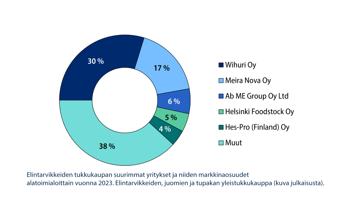 Maa- ja metsätalousministeriön tilaaman selvityksen mukaan Suomen elintarvikeketjussa ei ole selkeää tukkukauppamarkkinaa. Liiketoiminta koostuu palvelukokonaisuuksista ja tarjontaketjuista, joilla vastataan ostajien tarpeisiin. Kaupan omat merkit ohjaavat tarjontaketjuja.