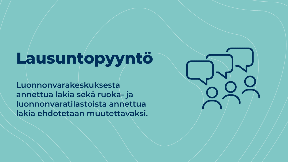 - Lausuntopyyntö luonnoksesta hallituksen esitykseksi laeiksi Luonnonvarakeskuksesta annetun lain ja ruoka- ja luonnonvaratilastoista annetun lain muuttamisesta