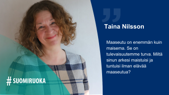 Taina Nilsson kirjoittaa blogissaan maaseudun tärkeydestä osana arkeamme. Maaseutu mahdollistaa kotimaisen ruuan ja ympäristönä se tukee hyvinvointiamme. Nilsson kirjoittaa, että maaseutu on myös täynnä tulevaisuuden mahdollisuuksia.