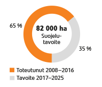 | Toteutunut Kemera-suojelu 2008–2016 ja kokonaistavoite vuodelle 2025 |