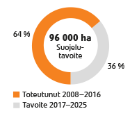 | Luonnonsuojelulailla toteutunut suojelu 2008–2016 ja kokonaistavoite vuodelle 2025 |