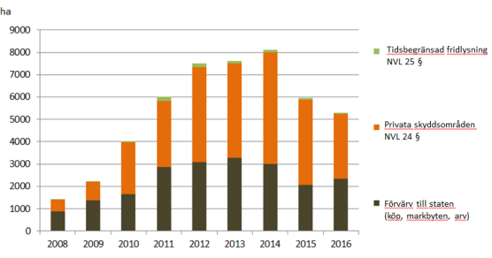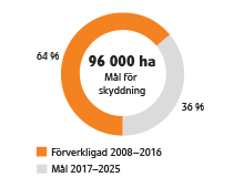 Skydd som genomförts med stöd av naturvårdslagen 2008–2016 och det övergripande målet för 2025