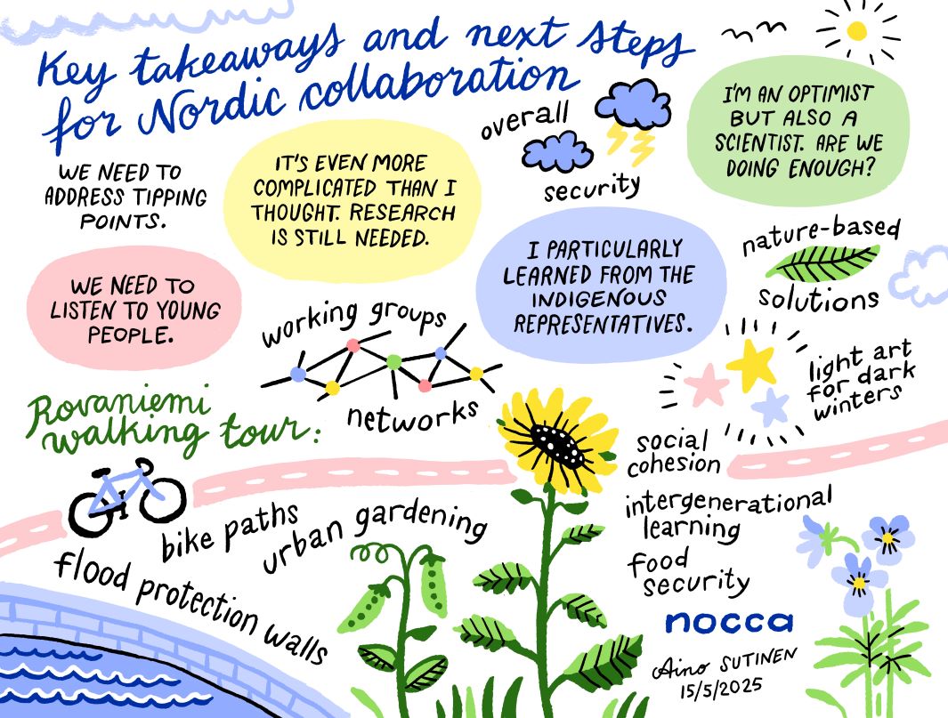 Pohjoismainen ilmastonmuutokseen sopeutumiskonferenssi NOCCA 2025 kokosi 14.−15.5.2025 Rovaniemelle 160 asiantuntijaa jakamaan uusinta tutkimustietoa ja käytännön esimerkkejä ilmastoriskeihin varautumisesta.