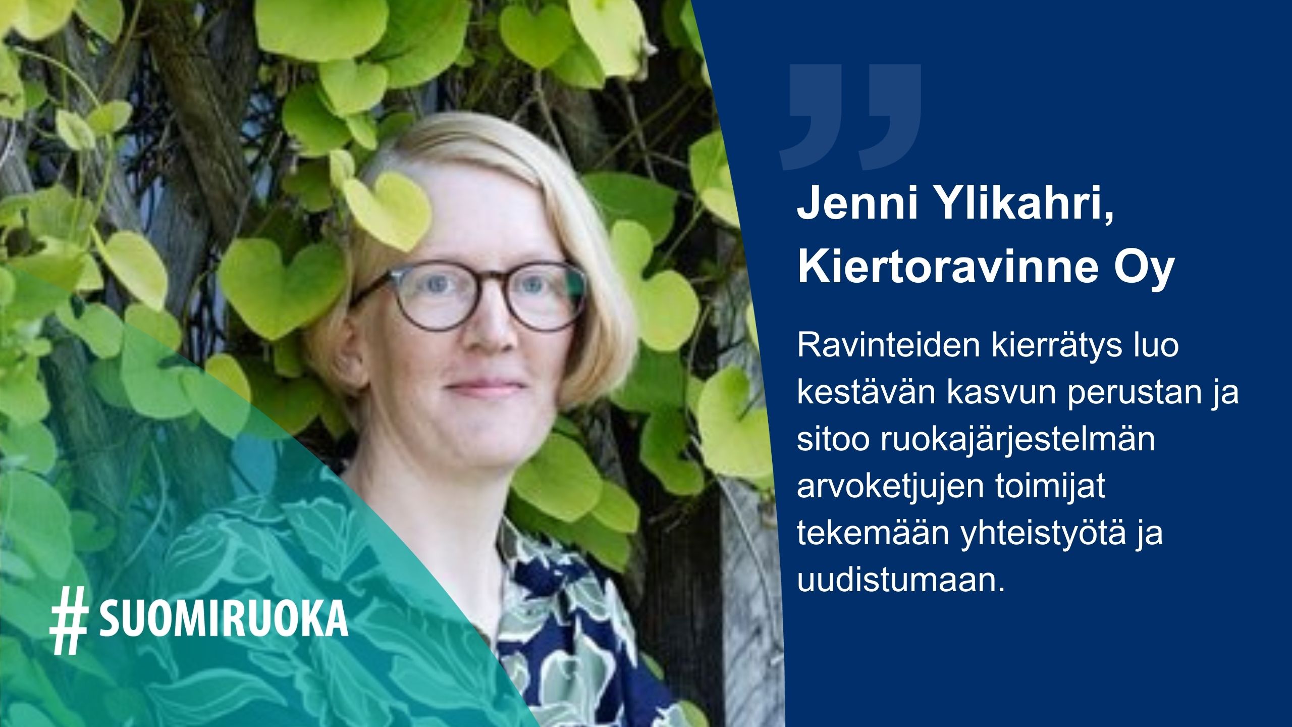 Jenni Ylikahri on maaseudun puolestapuhuja ja maatalouden kestävyyssiirtymän rakentaja. Hän työskentelee kiertotalousyhtiössä toimitusjohtajana. Hän on myös luomuviljelijä ja Suomen Biokierto ja Biokaasu ry:n hallituksen jäsen.