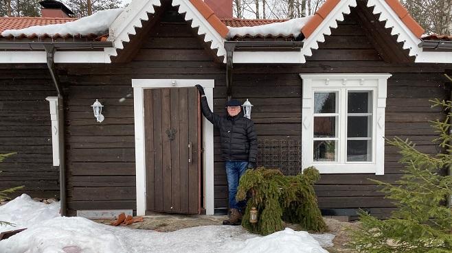 Reijo Karhisen intohimona ovat vanhat hirsirakennukset. Tässä talossa on puitu yhteistä ruokapöytää ministeri Lepän kanssa, Karhinen kertoo.