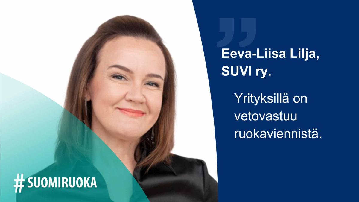 Kirjoittaja Eeva-Liisa Lilja (KTM) on pitkän linjan elintarvikeviennin kehittäjä ja visionääri. Hän työskentelee toimitusjohtajana viennin asiantuntijayritys Fennopromo Oy:ssä . Liljalla on monipuolinen kokemus kansainvälistymisen edistämisestä, alan hanketoiminnasta ja liiketoiminnan kehittämisestä. Lilja toimii Suomen elintarvikevientiyhdistys SUVI ry:n sihteerinä ja on yksi yhdistyksen perustajajäsenistä.