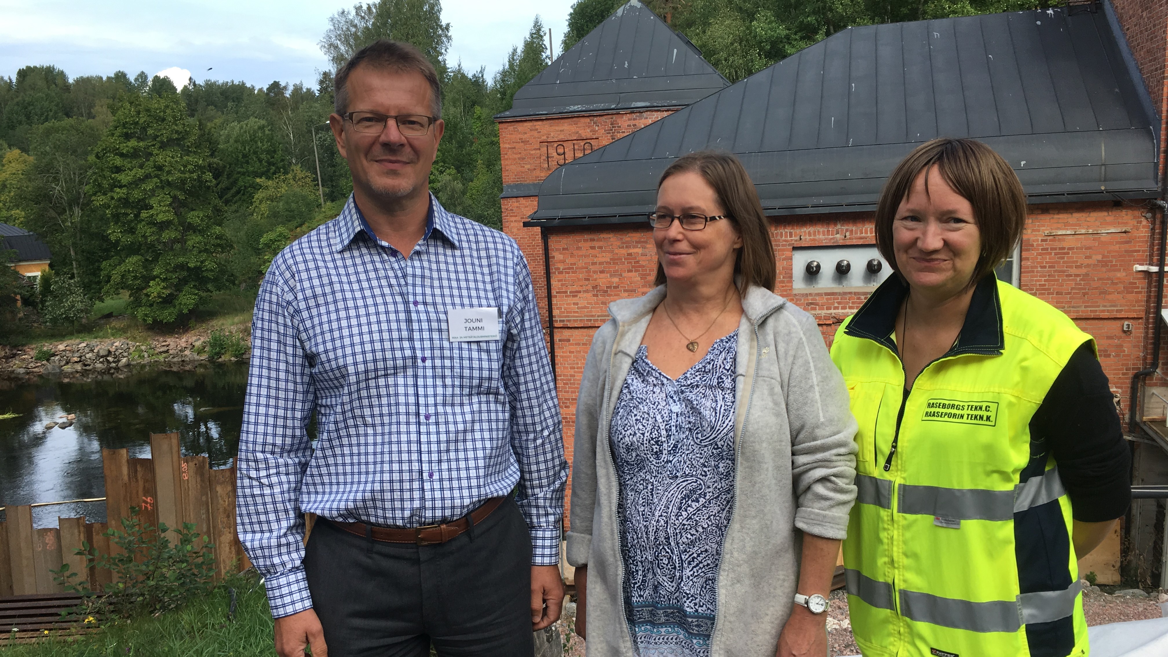 | Mustionjoella rakenteilla olevia Åminneforsin ja Billnäsin kalateitä esittelivät luonnon päivänä Jouni Tammi, Länsi-Uudenmaan vesi ja ympäristö ry:n toiminnanjohtaja Jaana Pönni ja Raaseporin kaupungin edustaja Piia Nordström. Kuva: Nikolina Ojalainen |