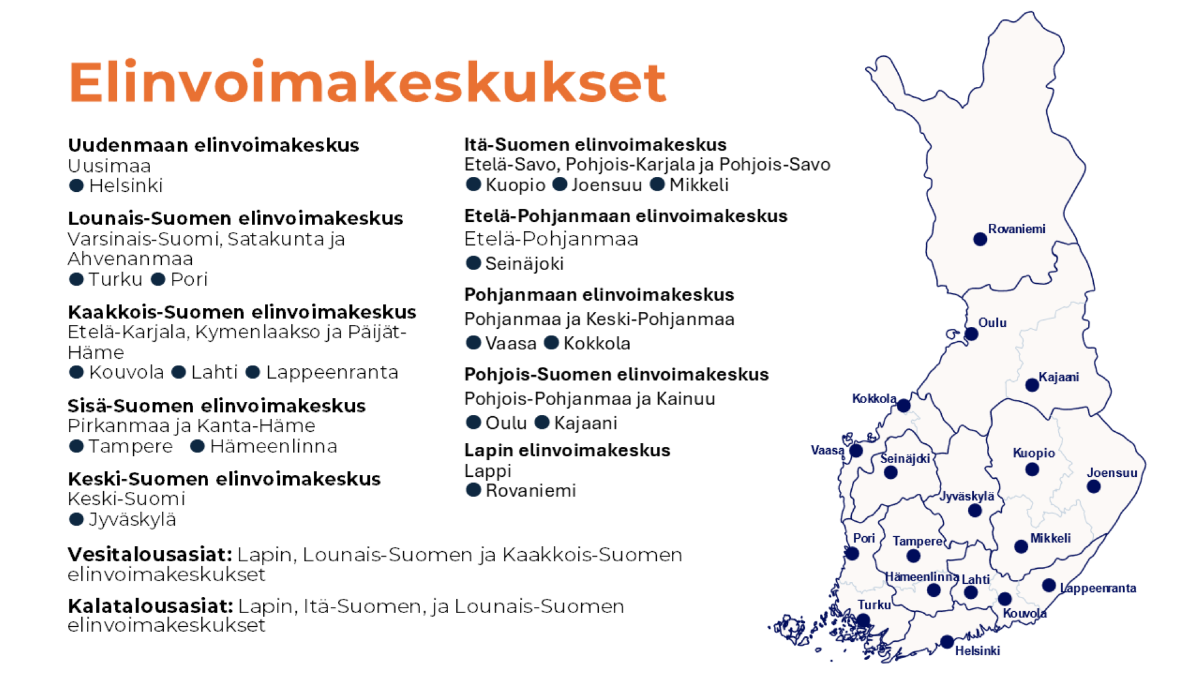 Aluehallinnon vesitaloustehtävät siirtyvät pääosin elinvoimakeskuksiin, ja myös niiden hoito keskitetään kolmelle alueelle. Ne ovat Lapin, Itä-Suomen ja Kaakkois-Suomen elinvoimakeskukset.