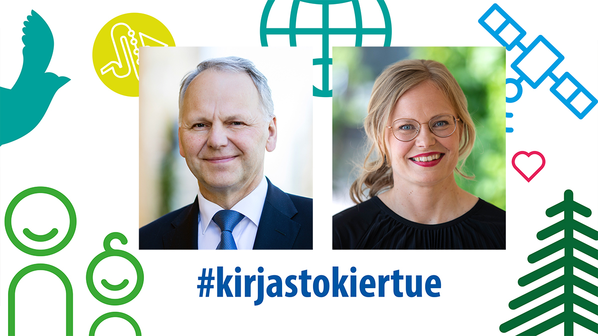 Diskussionsmötena kan följas i sociala medier med hashtaggarna #kirjastokiertue #biblioteksrunda.