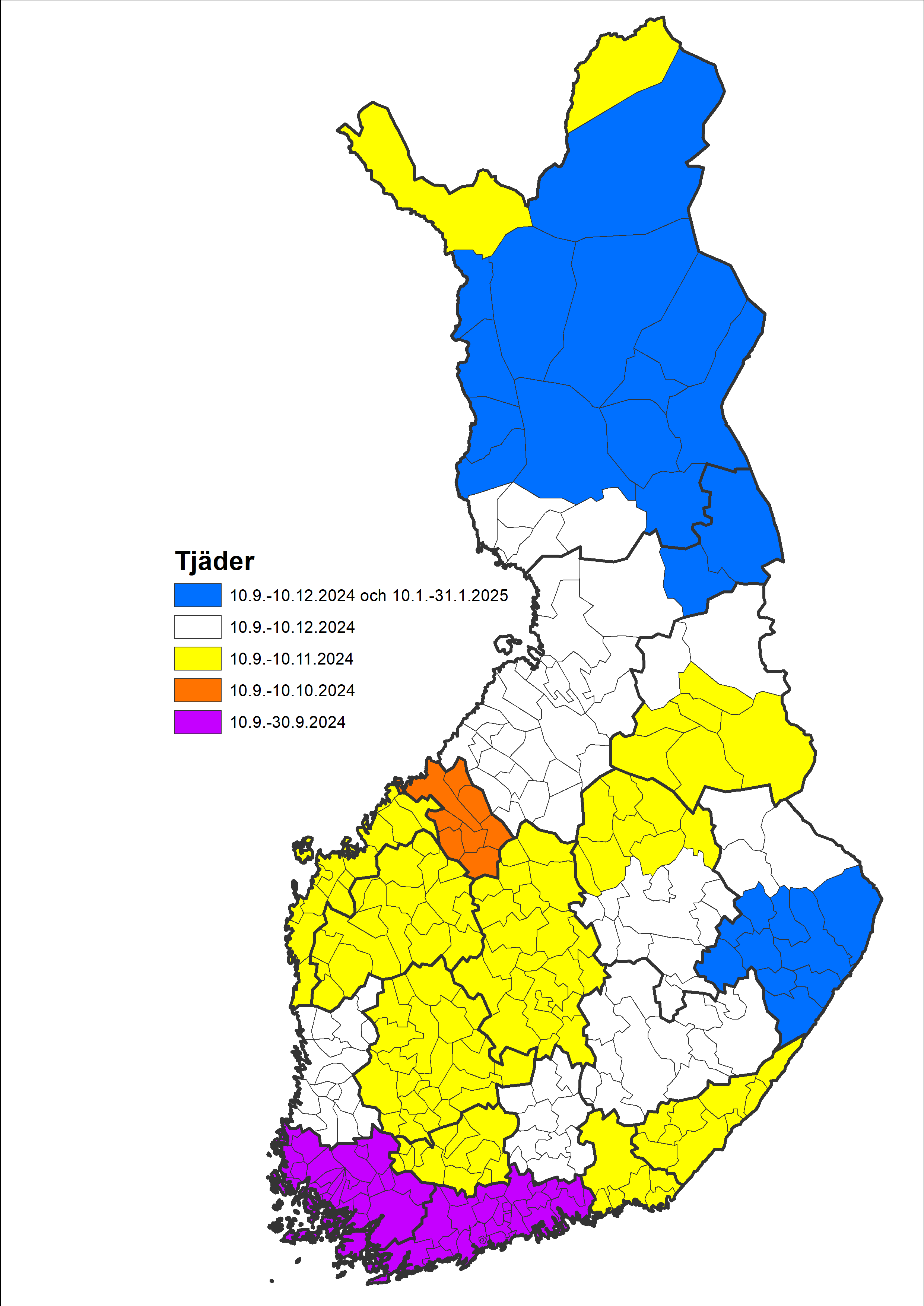 Kontrollera jakttiderna enligt kommun i bilagorna