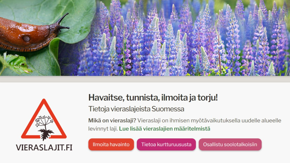 Observera, identifiera, rapportera och bekämpa! Information om främmande arter i Finland: vieraslajit.fi