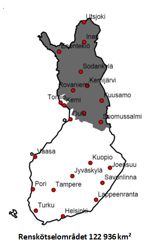 Renskötsel får drivas i Norra Finland inom renskötselområdet som är 122 936 kvadratkilometer stort. Området täcker 36 procent av Finlands yta. Eftersom renskötselområdet är stort, är det mycket varierat med många olika tillväxtzoner och markanvändningsformer. Folk- och rentätheten varierar också stort.