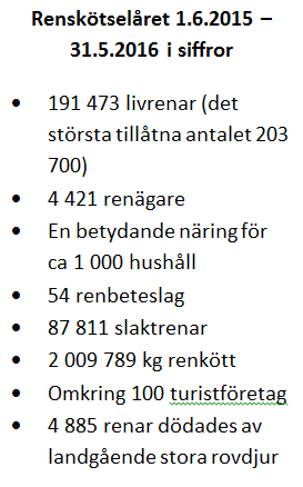Jord- och skogsbruksministeriet har öppnat en webbenkät med frågor om renskötsel. Enkäten är tillgänglig för alla och kan besvaras fram till slutet av oktober 2017. Syftet är att få in synpunkter, åsikter och idéer om renskötseln. Ministeriet vill också få reda på vilka utmaningar och möjligheter svarspersonerna ser inom renskötseln och i vilken riktning renskötseln borde enligt svarspersonerna utvecklas i framtiden. Samtidigt ger enkäten en bild av hur styrningen av renskötseln fungerar i dag. Ministeriet kommer att sammanställa och offentliggöra webbenkätens resultat på hösten.